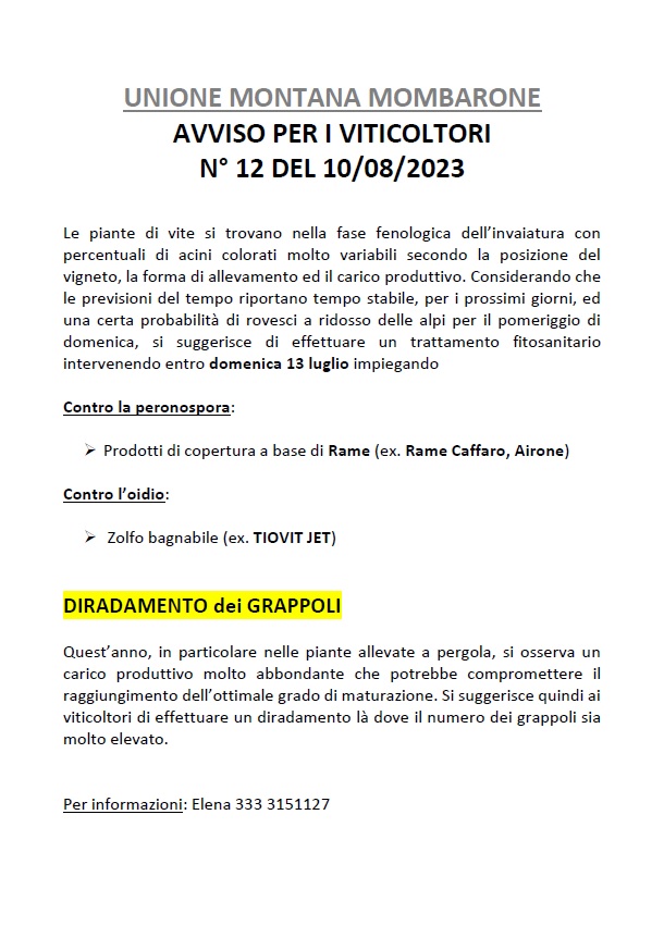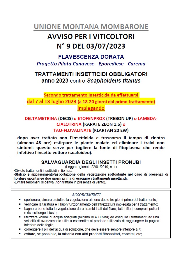Bollettini per i trattamenti anticrittogamici del vigneto 2023 - Vedi allegati