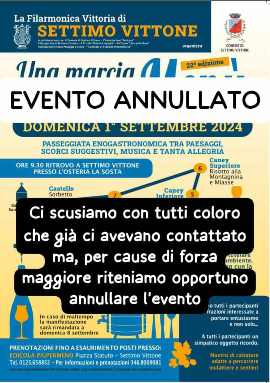 Una Marcia lunga un Menù prevista per il 1 settembre 2024 è annullata.