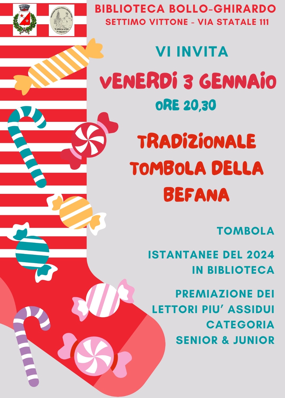 La Biblioteca Bollo-Ghirardo di Settimo Vittone vi invita alla tradizionale tombola della Befana.