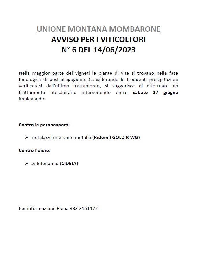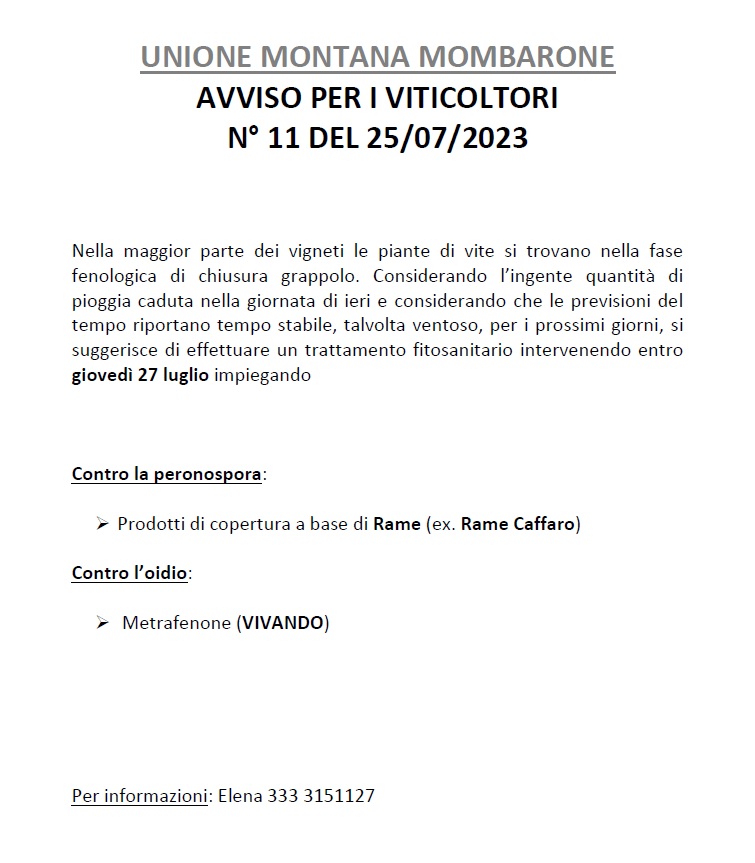 Bollettini per i trattamenti anticrittogamici del vigneto 2023 - Vedi allegati