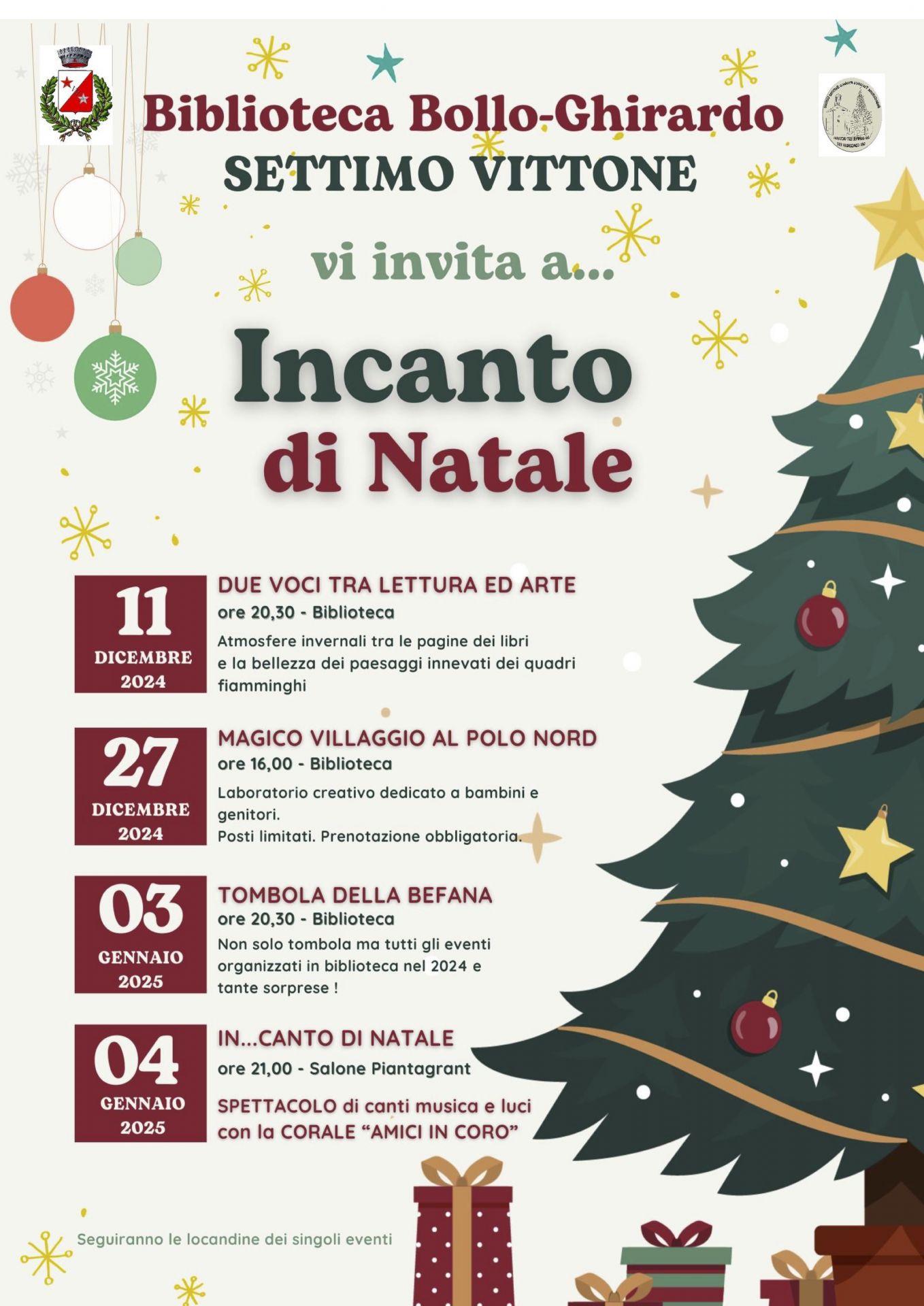Programma degli eventi di dicembre/gennaio organizzati dalla Biblioteca di Settimo Vittone.