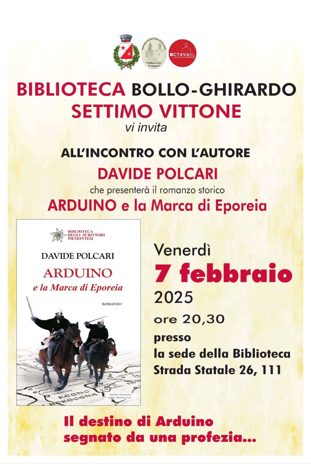 Incontro con l'autore Davide Polcari che presenterà il suo romanzo storico Arduino e la Marca di Eporedia.