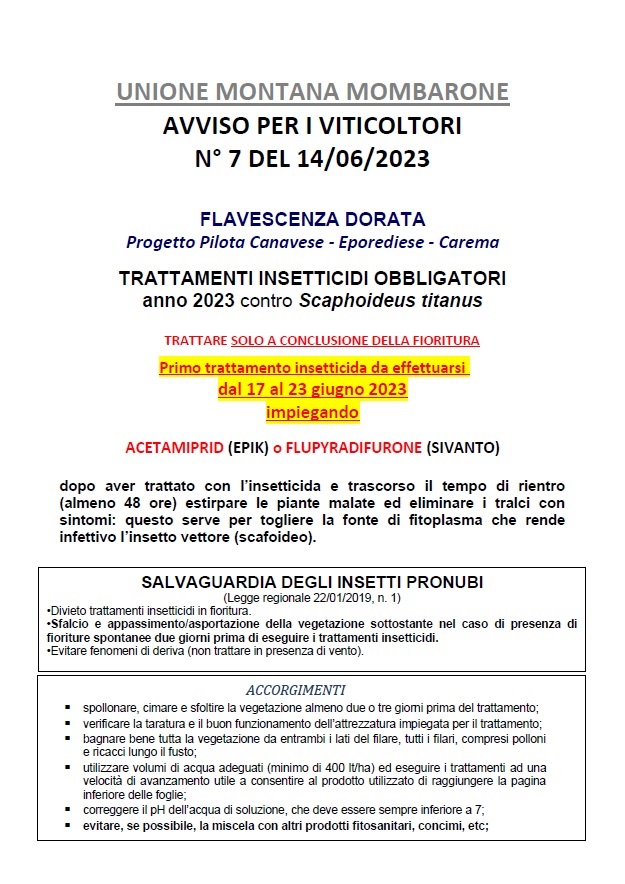 Bollettini per i trattamenti anticrittogamici del vigneto 2023 - Vedi allegati