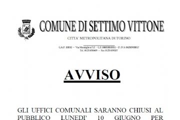 Avviso - Chiusura Uffici Comunali Lunedì 10/06/2024