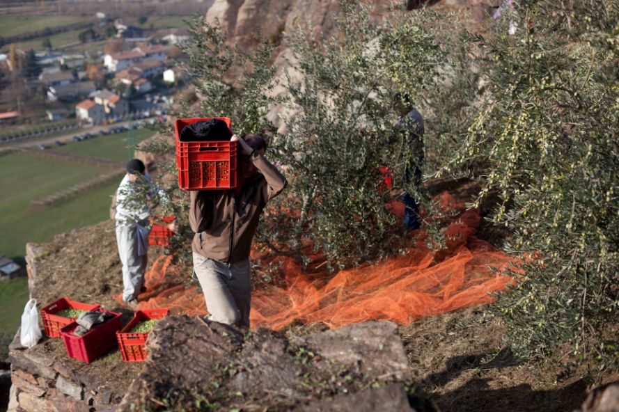 Con l’aiuto dell’università di agraria di Torino, Adriano Giovanetto ha fatto un’approfondita ricerca sulle varietà di olive storiche di questa zona, quelle che meglio si adattavano al clima del canavesano, ed è riuscito a far costruire, in centro al paese, un moderno frantoio; l’olio prodotto è realizzato con le diverse varietà di olivi selezionati per questi terrazzamenti: tra questi spicca la cultivar Don Carlo che permette la produzione di un extravergine di altissima qualità. Viene anche proposto un delizioso olio aromatizzato al limone.