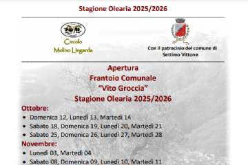 Si comunicano le date di apertura del Frantoio Comunale "Vito Groccia"