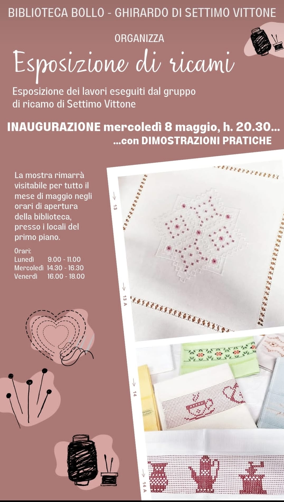 Esposizione dei lavori eseguiti dal gruppo di ricamo di Settimo Vittone.